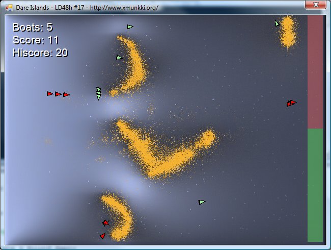 Description: This is my entry for the 17th 48h ludumdare game programming competition. The theme was “Islands”. In this game you have red and green boats. You must guide the red boats into the red goal zone and the green boats into the green goal zone. You guide the boats by drawing and removing islands with the left and right mouse buttons. This affects the water flow and the boats will follow.